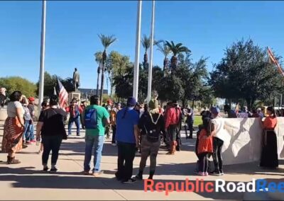 The 4th Peaceful Protest in the #AZREVOTE movement completed Saturday with ZERO violence. This has officially set a precedent for peaceful protest. In future protests, any violence will CLEARLY be from FED Infiltrators trying for a false flag or from outside Antifa/Leftist groups as the Patriots in Arizona are demonstrably and repeatedly peaceful. At one point a Native American Group joined with the Peaceful Patriots.