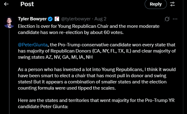 Turning Point action CEO Tyler Bowyer on August 2nd seemed to express sour grapes at Guinta winning re-election: