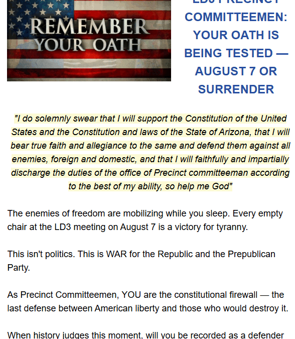 “The enemies of freedom are mobilizing while you sleep. Every empty chair at the LD3 meeting on August 7 is a victory for tyranny.