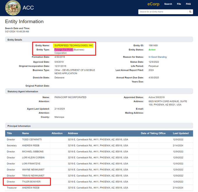 What exactly are Superfeed Technologies CEO and Chairman of the Board Tyler Bowyer’s Ukraine connections? Notus alleged that their app was made in Ukraine notus.org/trump-2024/tru
